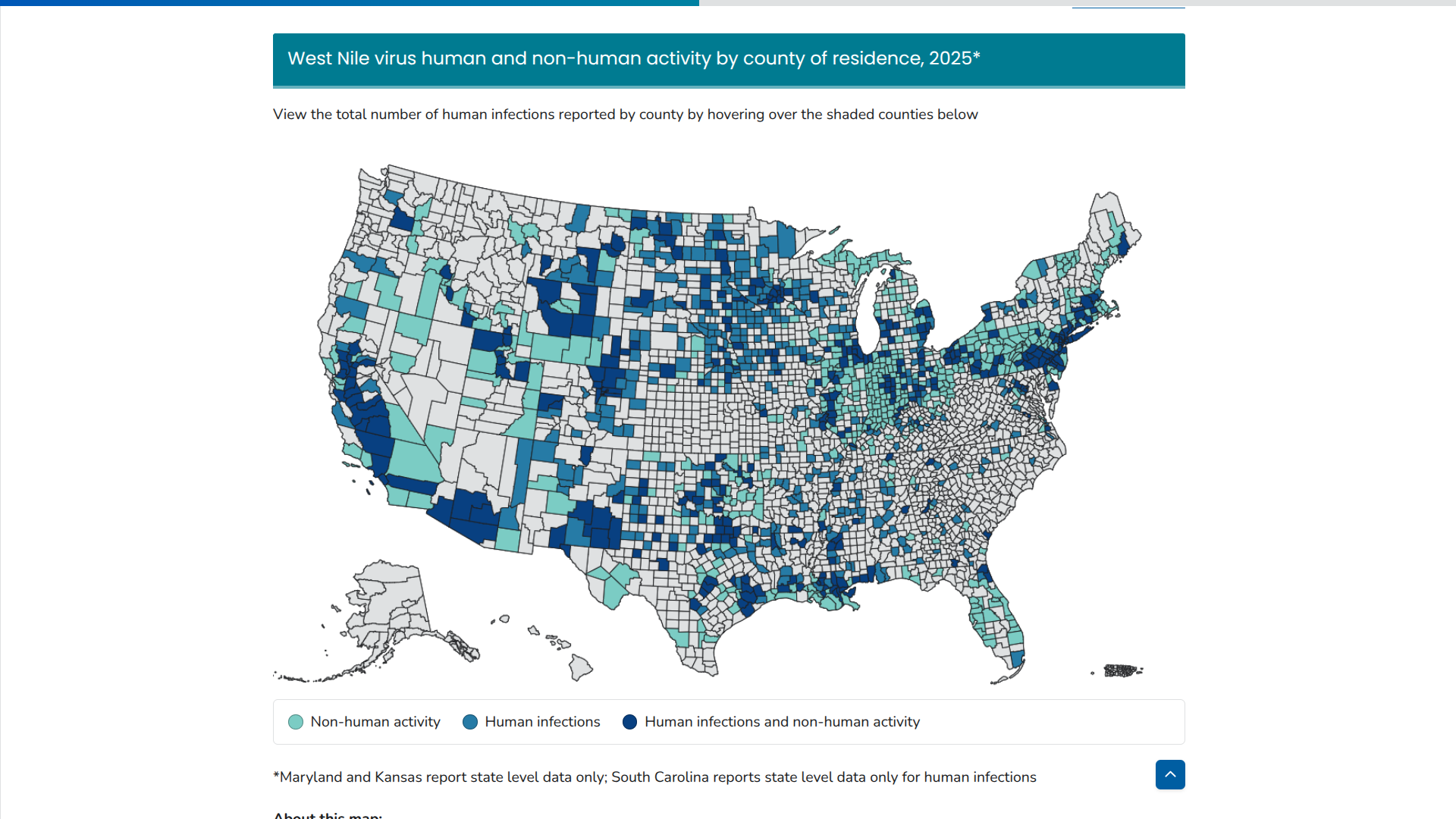 As of December 17, 2025, the CDC reported over 2,000 individuals infected with WNV this year. Colorado is an unfortunate leader with 284 cases. Texas has reported 4 WNV-related deaths.
