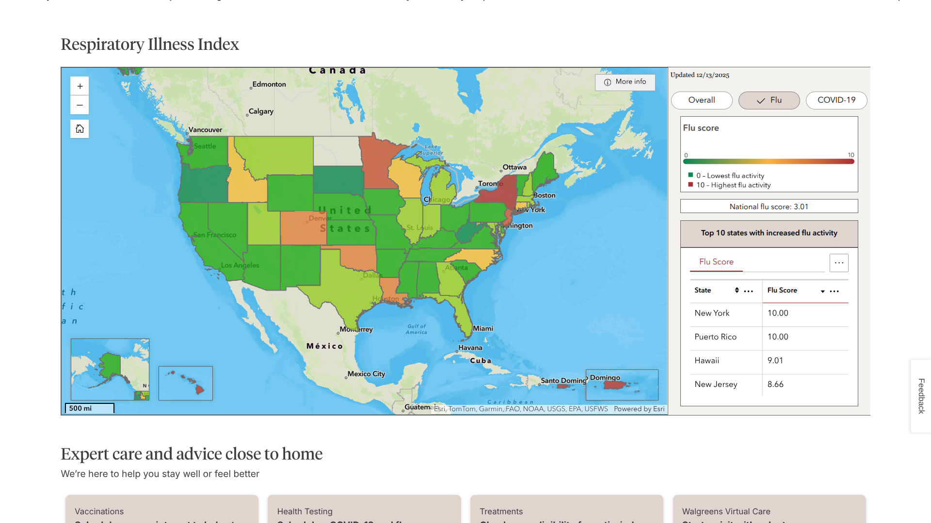 The Index recently ranked New York, Puerto Rico, and Hawaii at the top of its list of influenza-related activity.