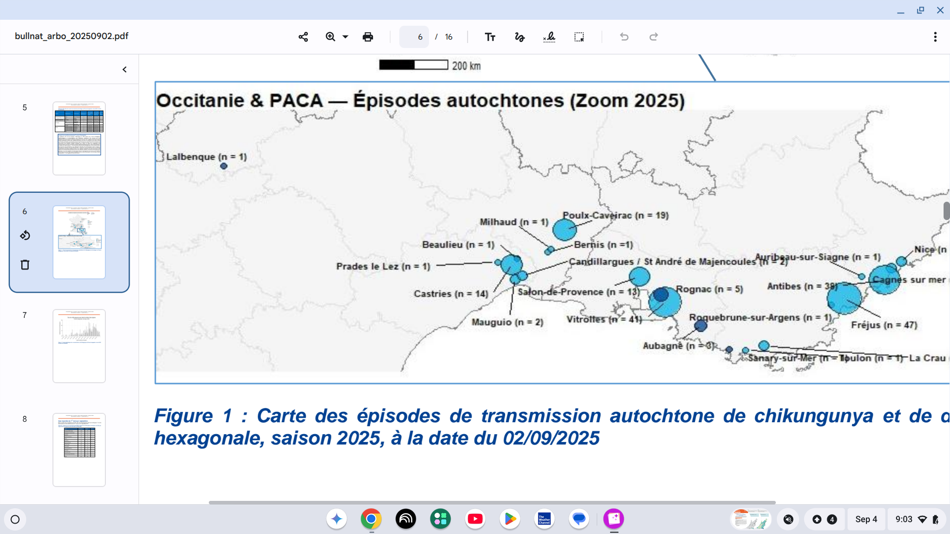 In mainland France, the Health Agency reported on September 4, 2025, that an unprecedented situation has developed, with the number of locally acquired cases exceeding previously unseen levels.