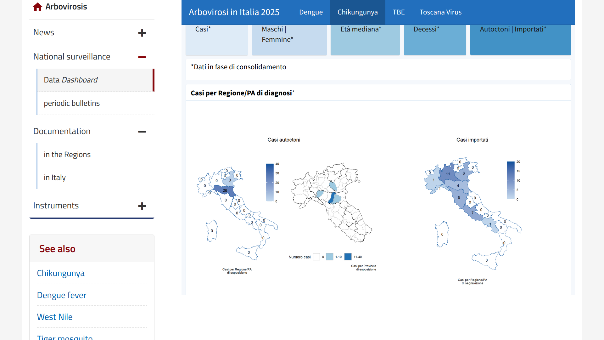 On August 21, 2025, ISS reported four local transmission events of the chikungunya virus had been identified in the northern regions of Emilia-Romagna and Veneto in two outbreaks.