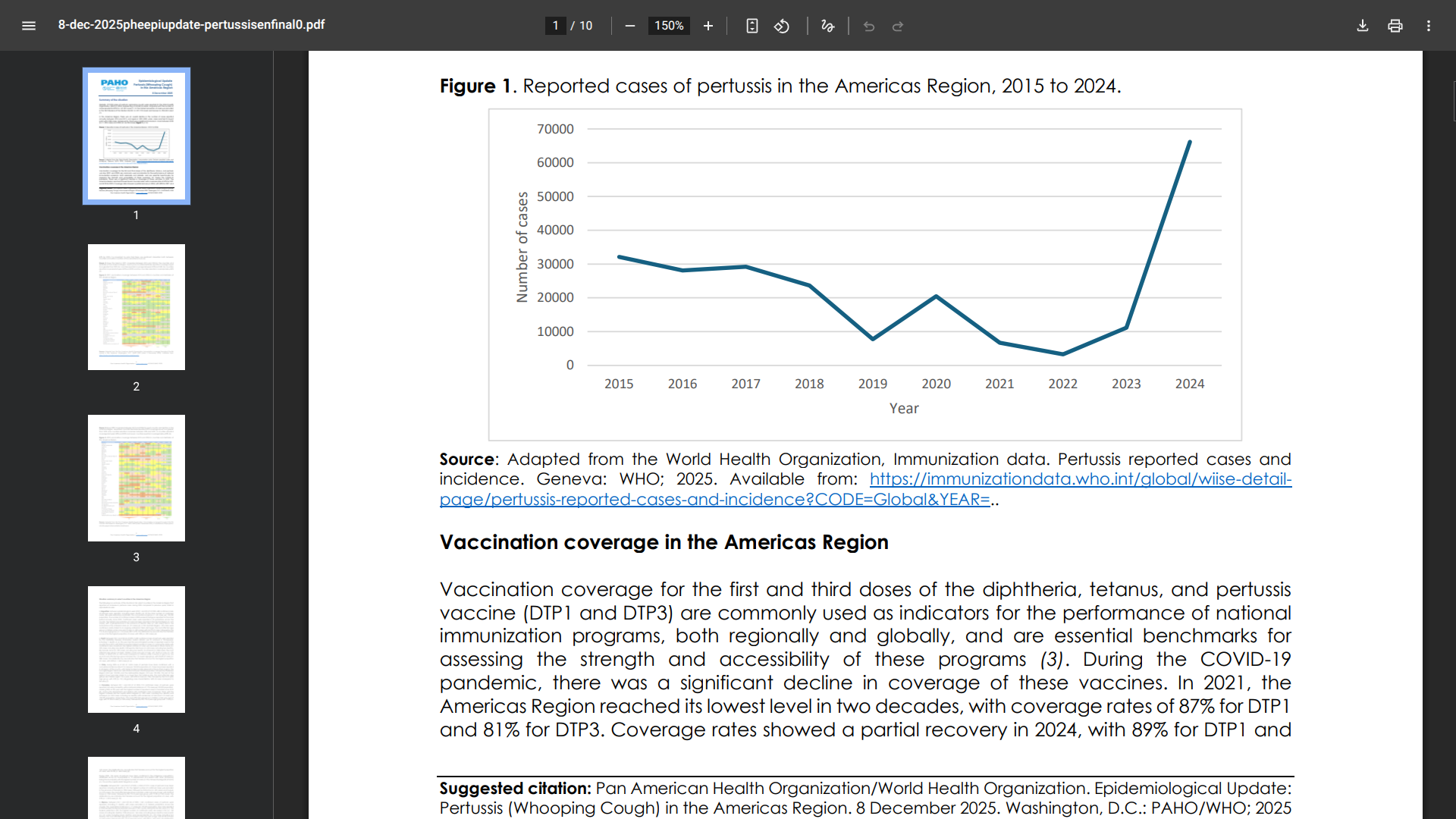 According to the latest epidemiological update from the Pan American Health Organization (PAHO), countries in the Americas must address vaccination gaps as there has been a resurgence of pertussis, commonly known as whooping cough, which has been steadily increasing since 2023.