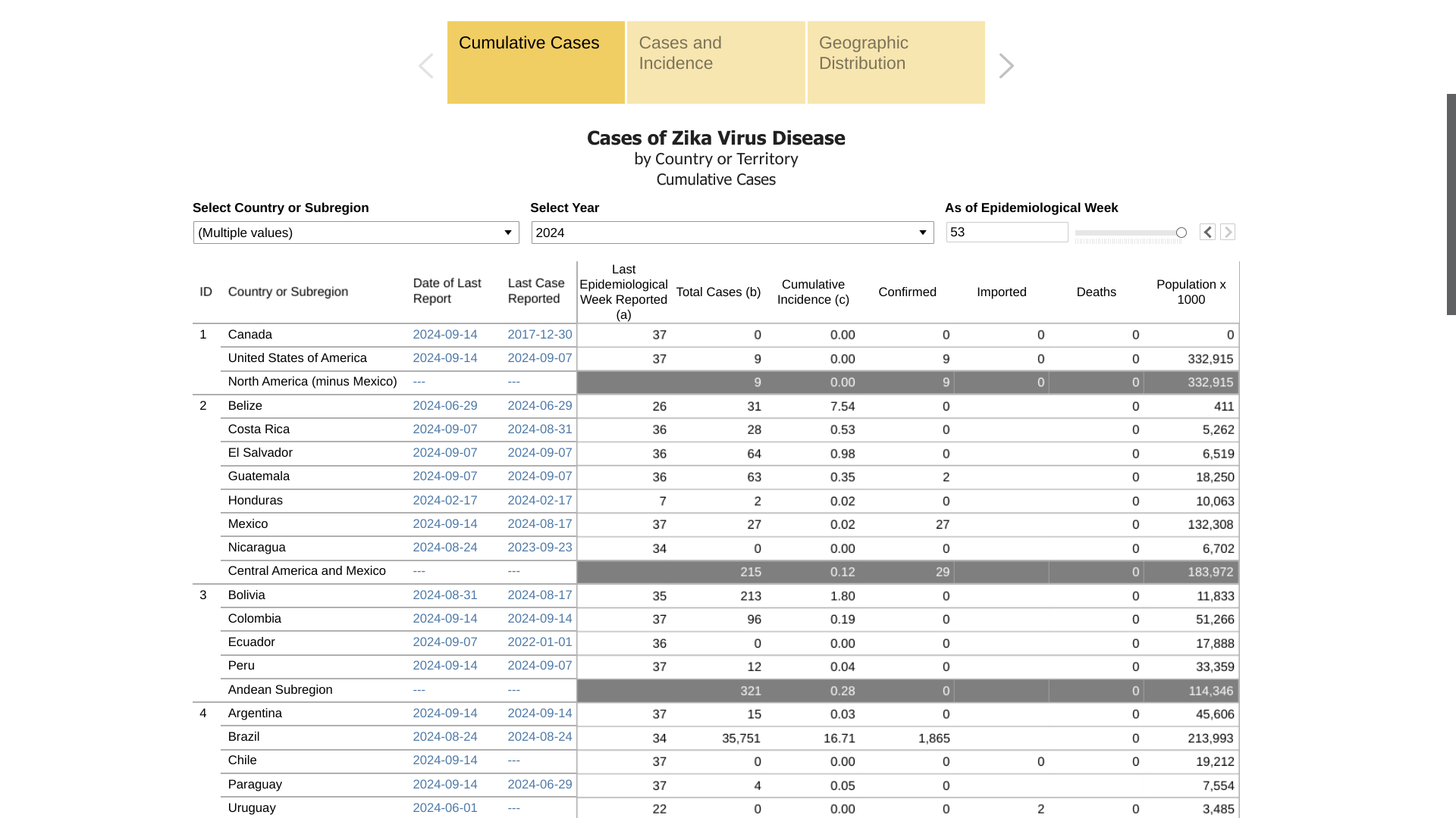 As of September 24, 2024, the Pan American Health Organization (PAHO) reported 36,331 Zika cases this year.