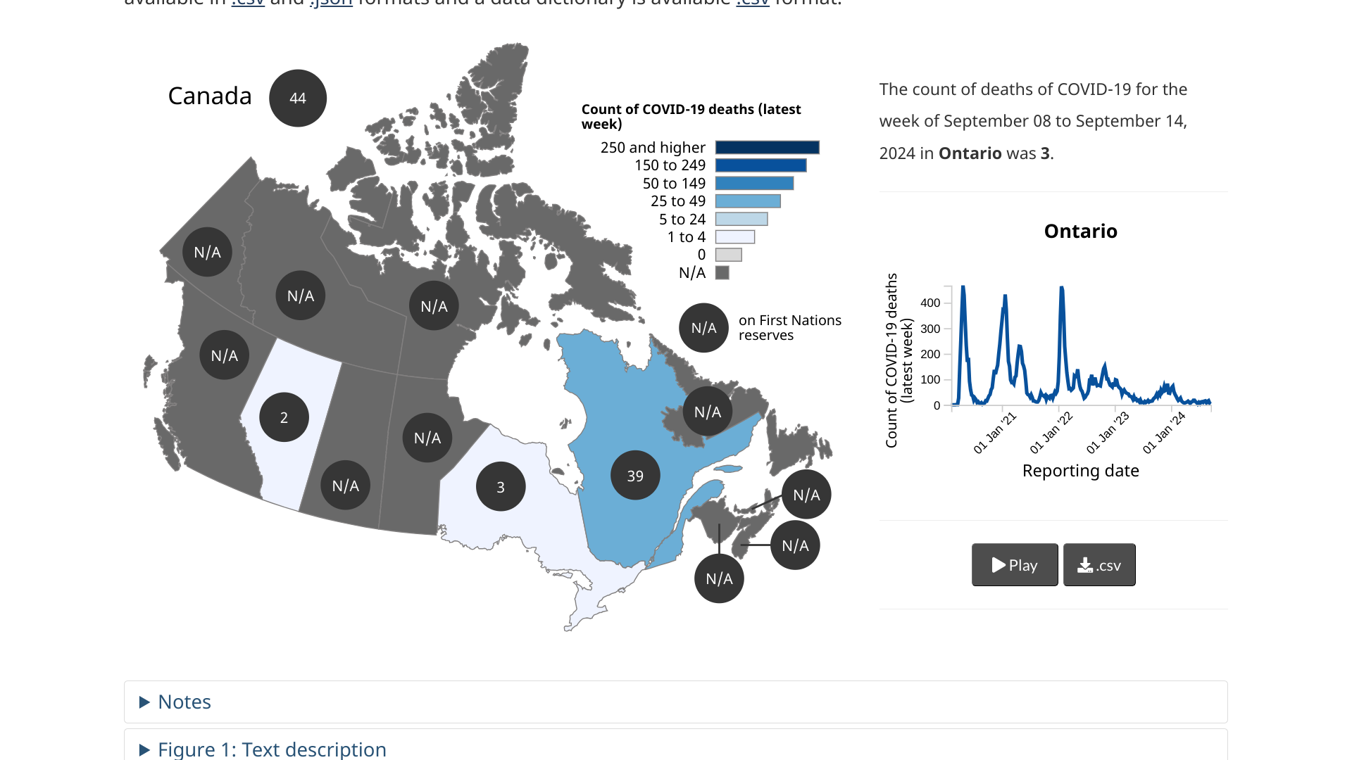 Health Canada posts a summary of COVID-19 cases, hospitalizations, and deaths across Canada as of September 24, 2024.