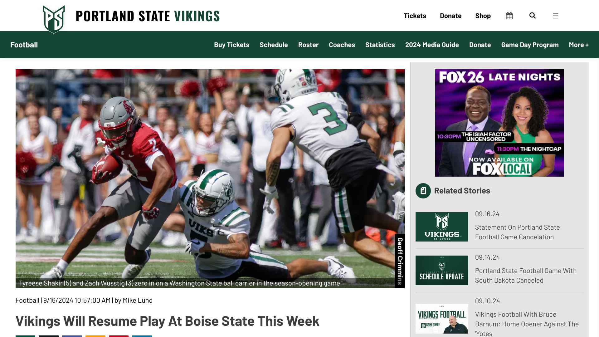Portland State determined that the game in Oregon would not be played in the interest of student-athletes' health.