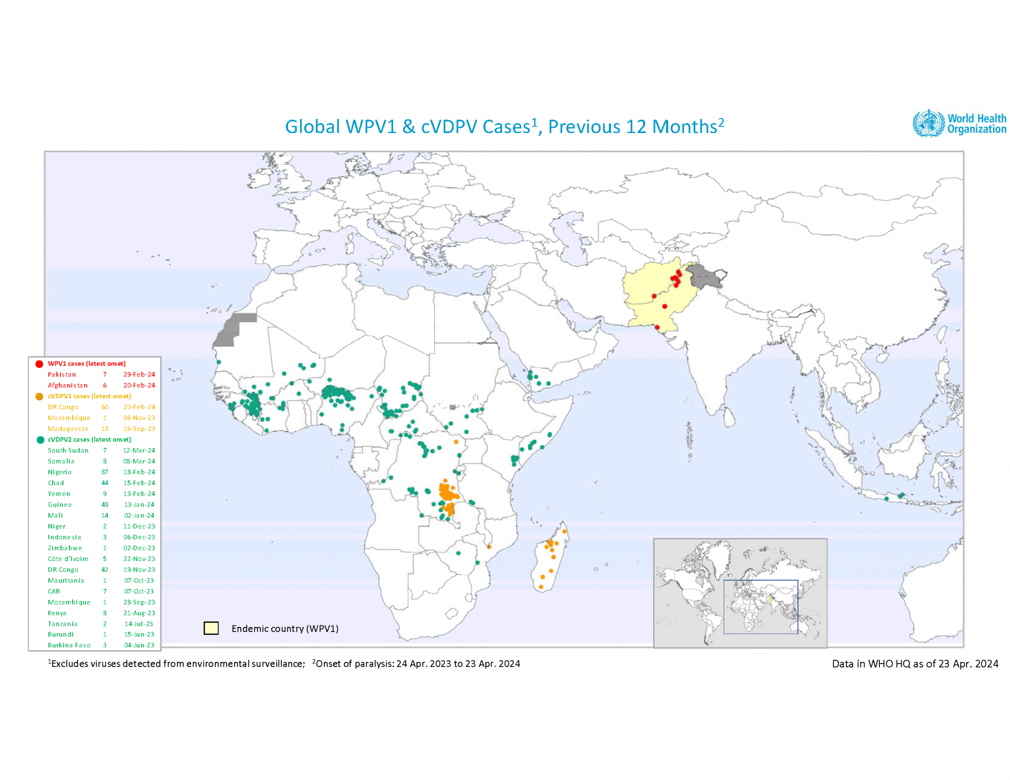- Zimbabwe: one cVDPV2-positive environmental sample