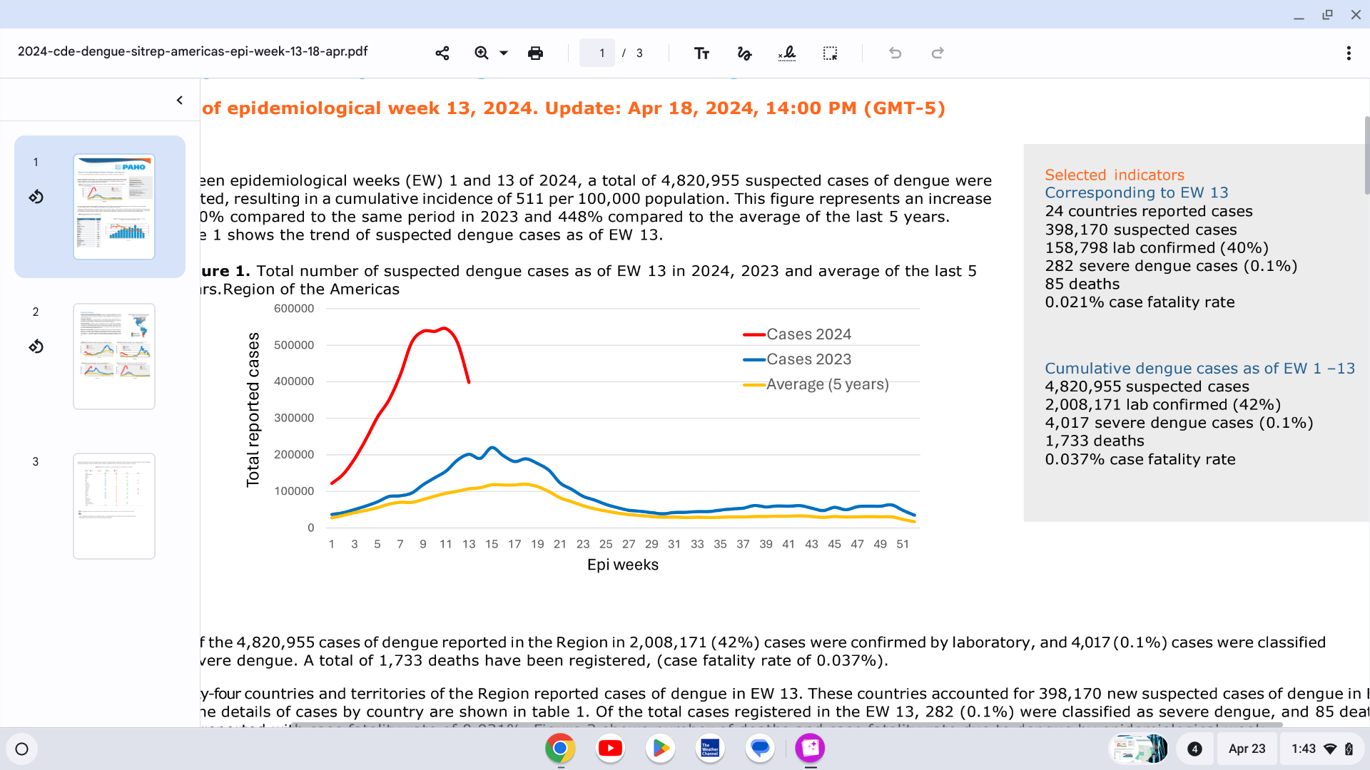 The Pan American Health Organization (PAHO) recently issued Situation Report No. 14 confirming that 4,820,955 suspected cases of Dengue (an increase