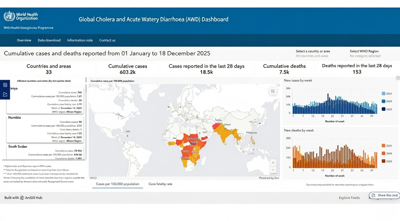 As of December 31, 2025, the WHO has reported a total of 601,845 cholera cases and 7,671 deaths across 31 countries in Africa, Asia, the Middle East, and the Americas.