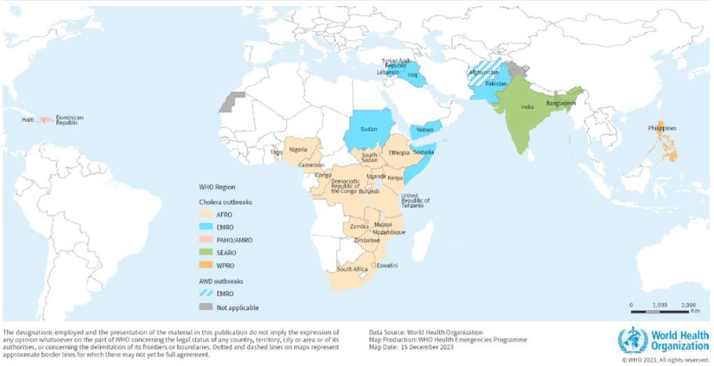 About 17 countries across four WHO regions reported over 40,000 cholera cases and 775 related deaths in January 2024.