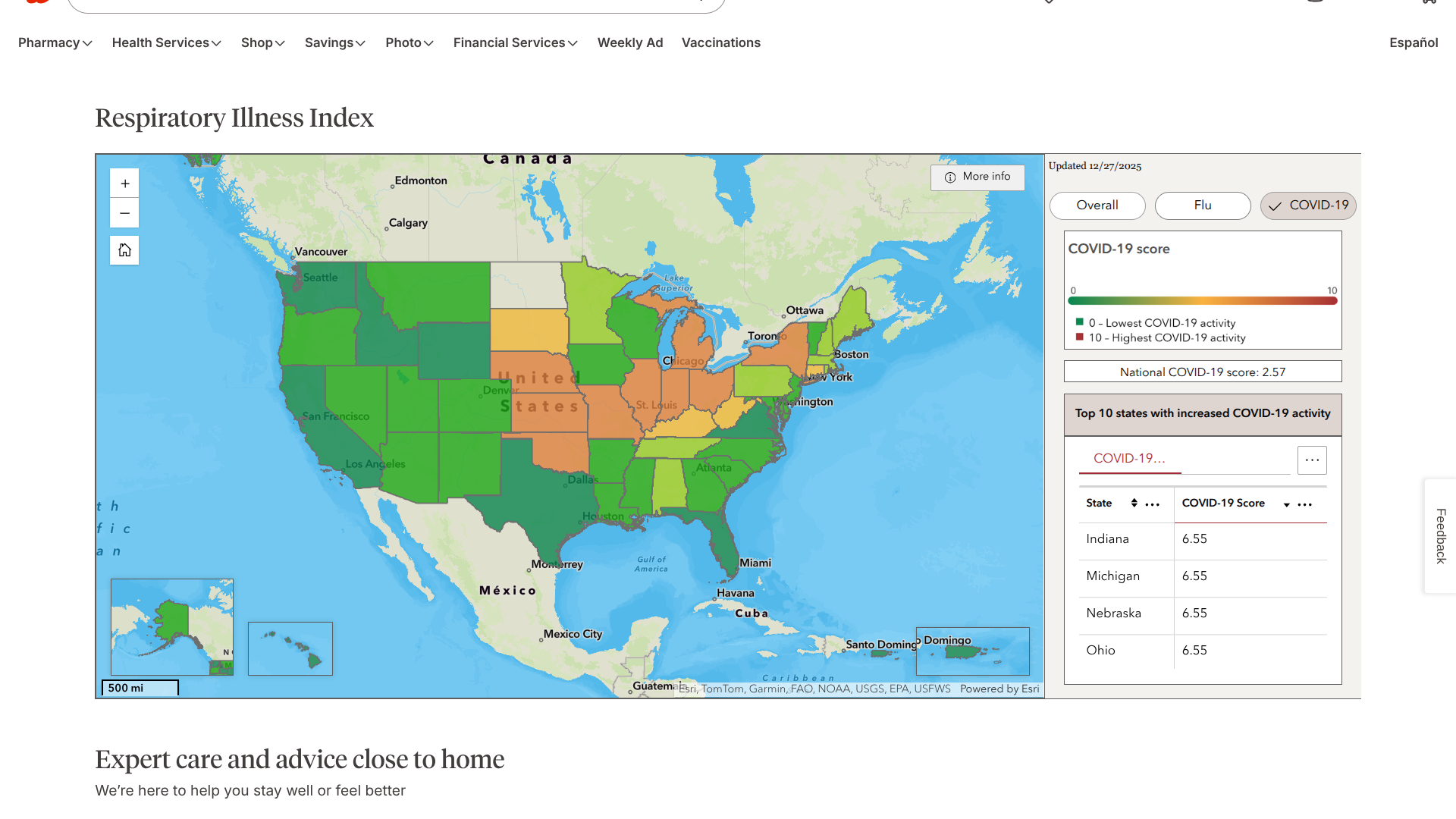 As of December 31, 2025, the leading states reporting COVID-19-related medications and vaccinations utilization at Walgreens pharmacies include Indiana, Michigan, Nebraska, and Ohio.