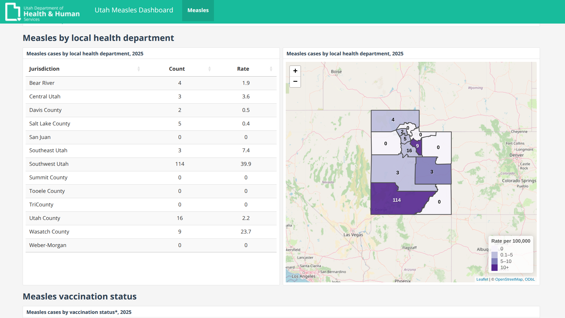 And on January 1, 2025, Utah's Beaver, Garfield, Iron, Kane, and Washington counties reported their total measles cases reaching 114. These reports contributed to Utah's statewide total, which climbed to 156 confirmed cases at the end of 2025.