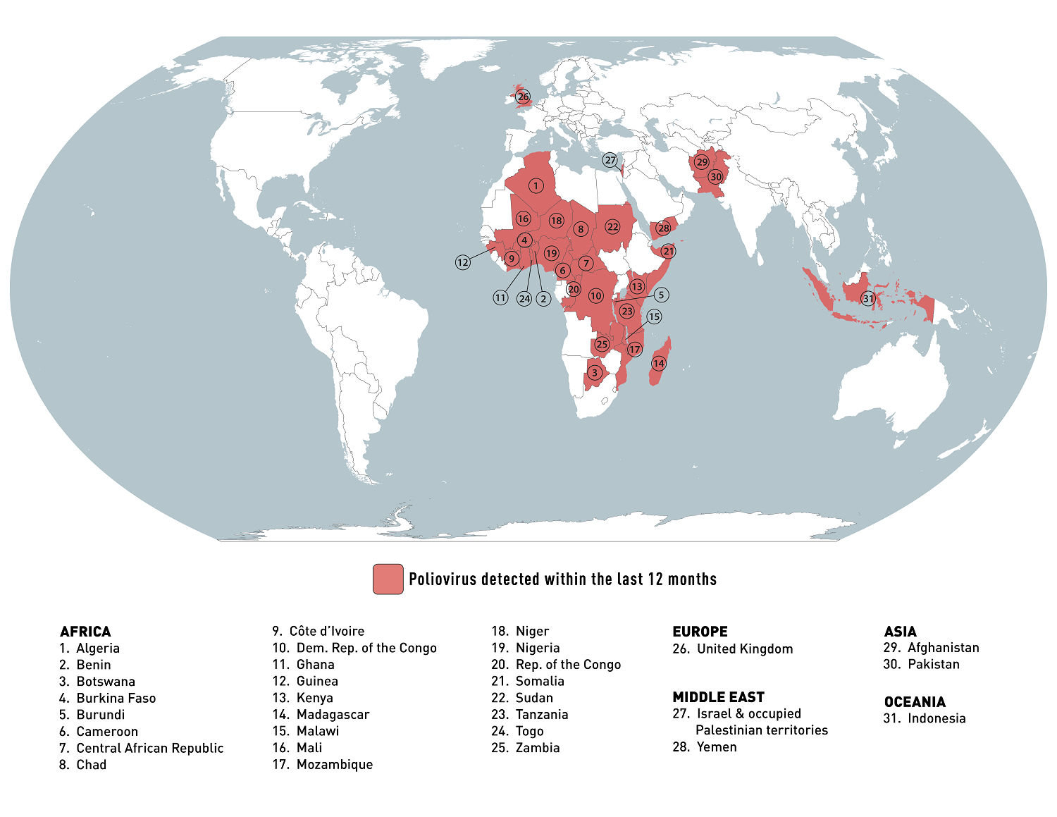 And Indonesia's confirmed one cVDPV2 case was reported this week in Jawa Tengah. There have been four cVDPV2 cases this year and one case in 2022.