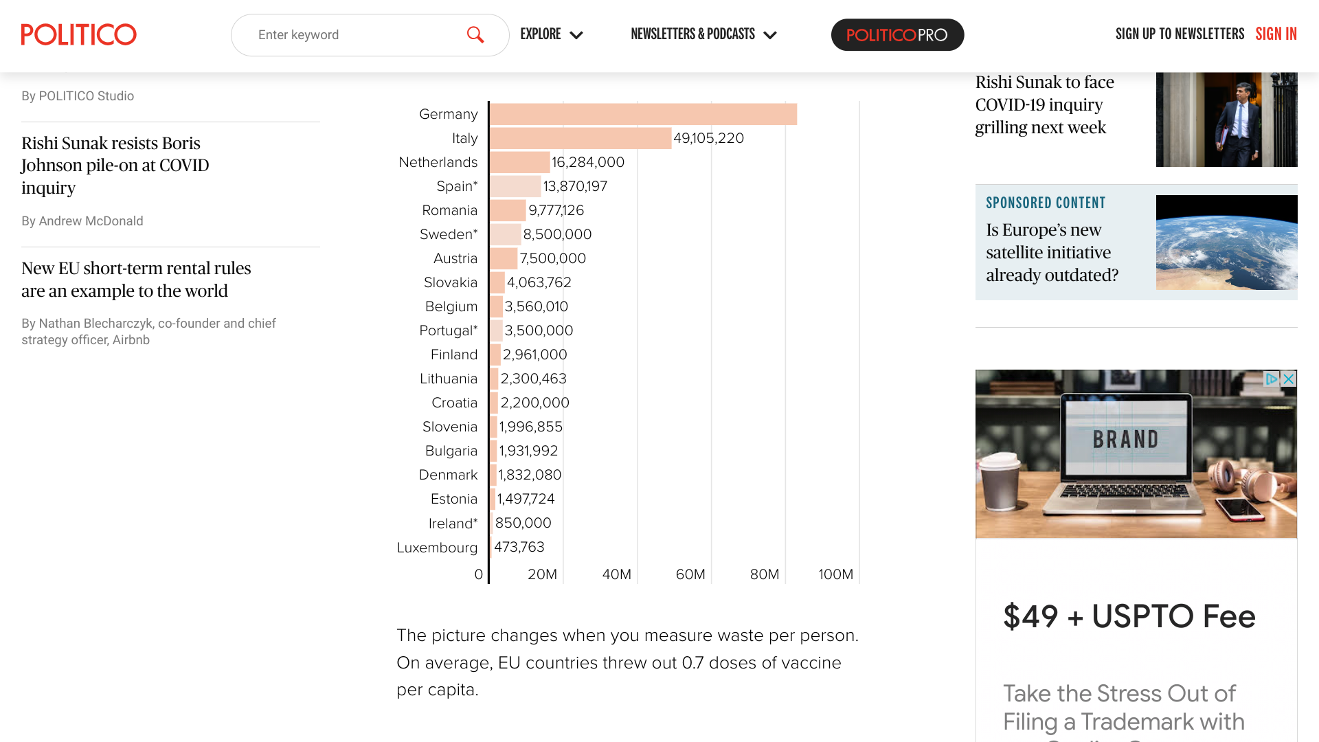 POLITICO's December 18, 2023 announcement is based on data from 19 EU countries. Germany, for example, provided its vaccine waste figures to POLITICO in June 2023.