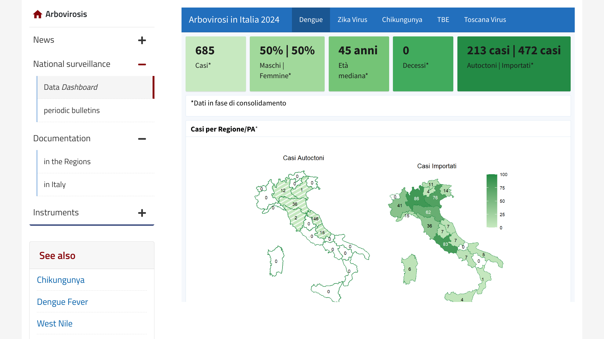 In total, the Italian National Public Health Authority has reported 213 locally acquired dengue cases in 2024.