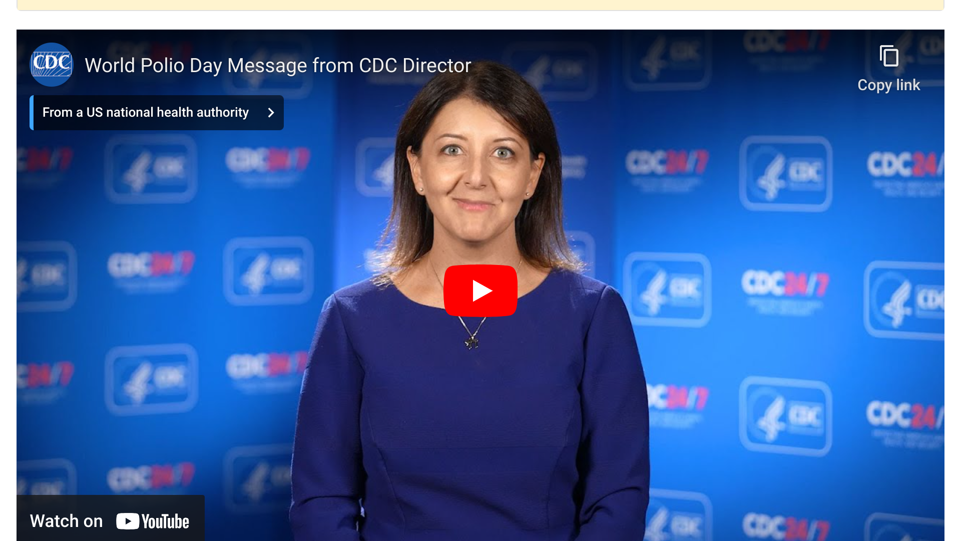 "It's Time to Make Polio History,' says U.S. CDC Director Mandy K. Cohen, MD, MPH, in a related video message posted on YouTube on October 4, 2023. "It won't be easy, but making history never is. We have the tools and knowledge to ensure no child is paralyzed by polio again."