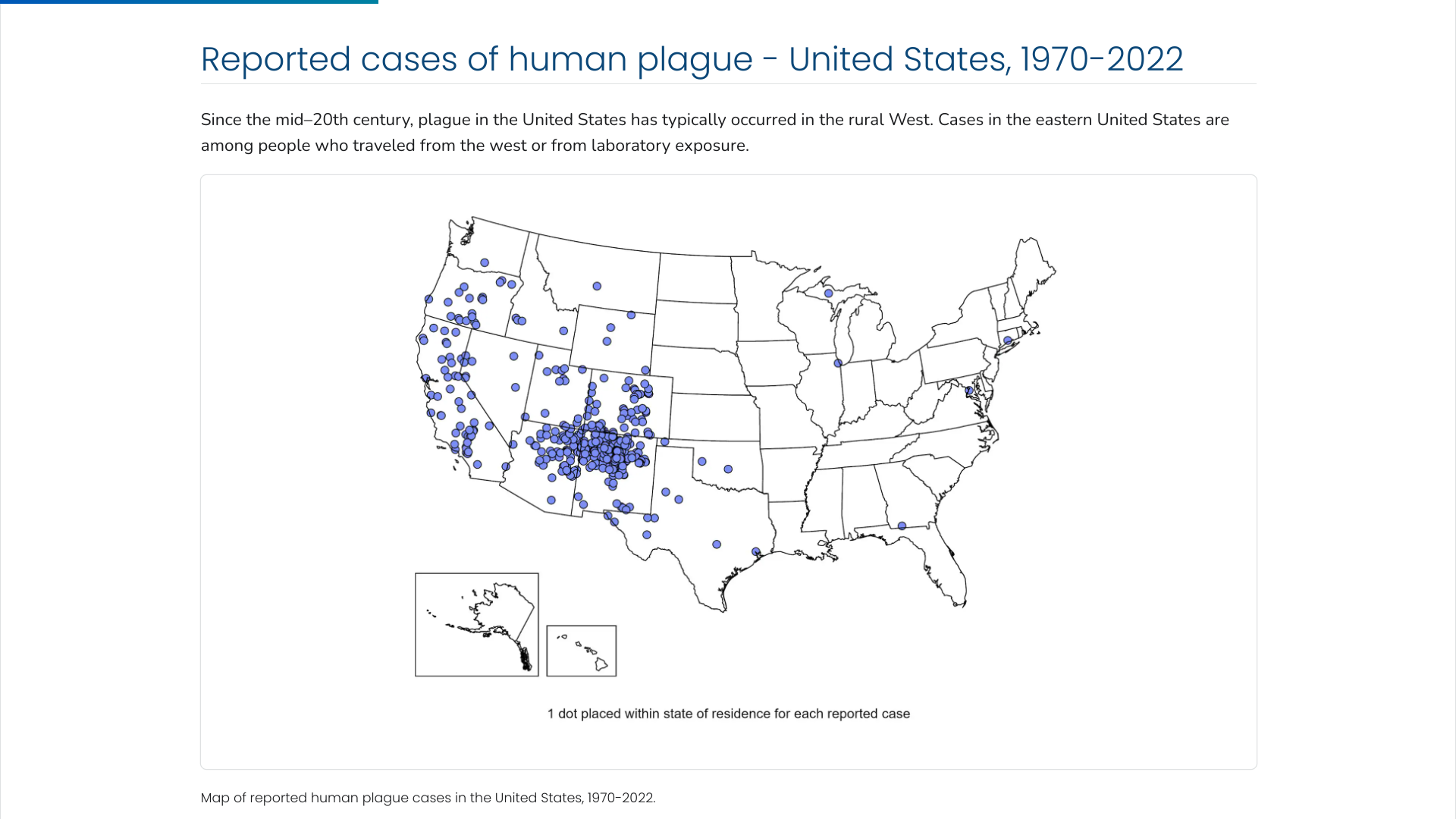 As of 2024, the CDC estimates that seven human cases of Plague occur in the U.S. each year.