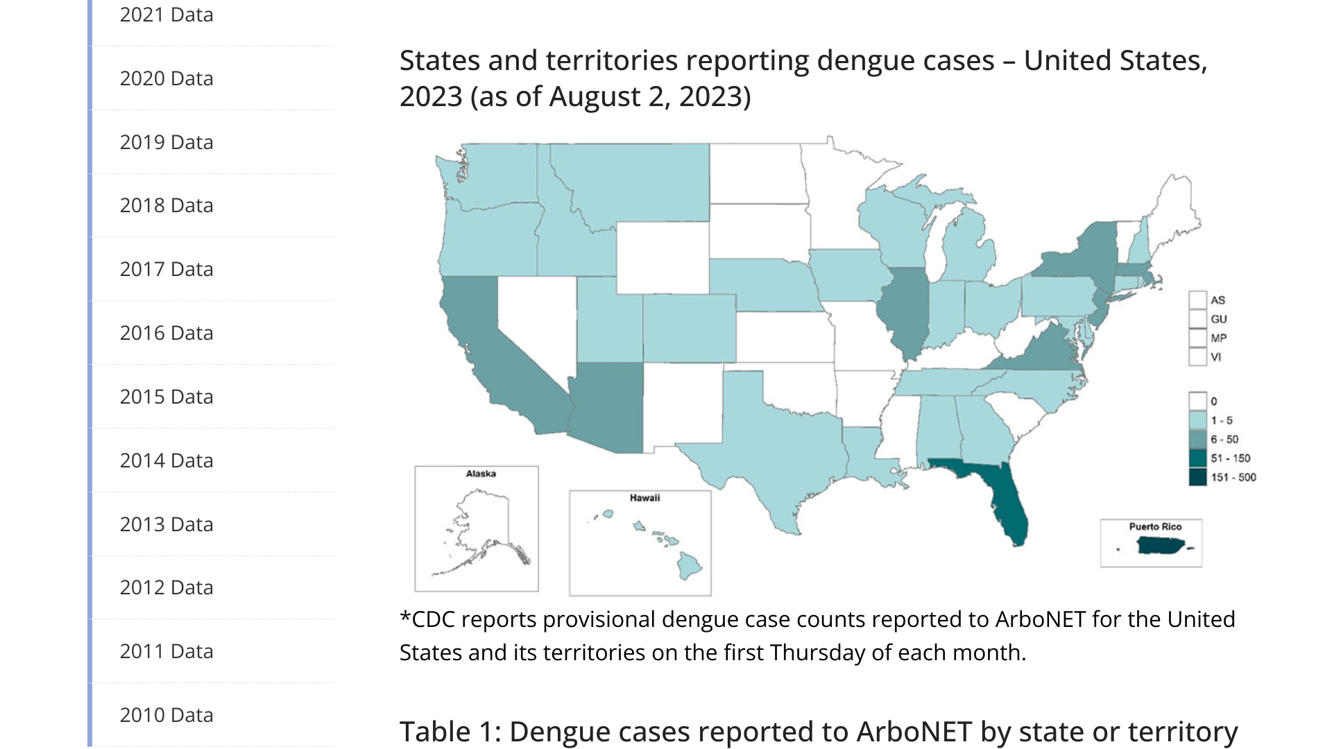 For all of 2022, the CDC reported, the CDC reported 2,016 dengue cases.