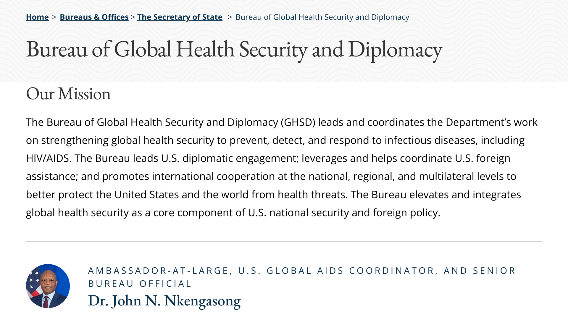 The Bureau’s overarching mission is to fortify the global health security architecture to effectively prevent, detect, control, and respond to infectious diseases, including HIV/AIDS, wrote the Secretary of State on August 1, 2023.