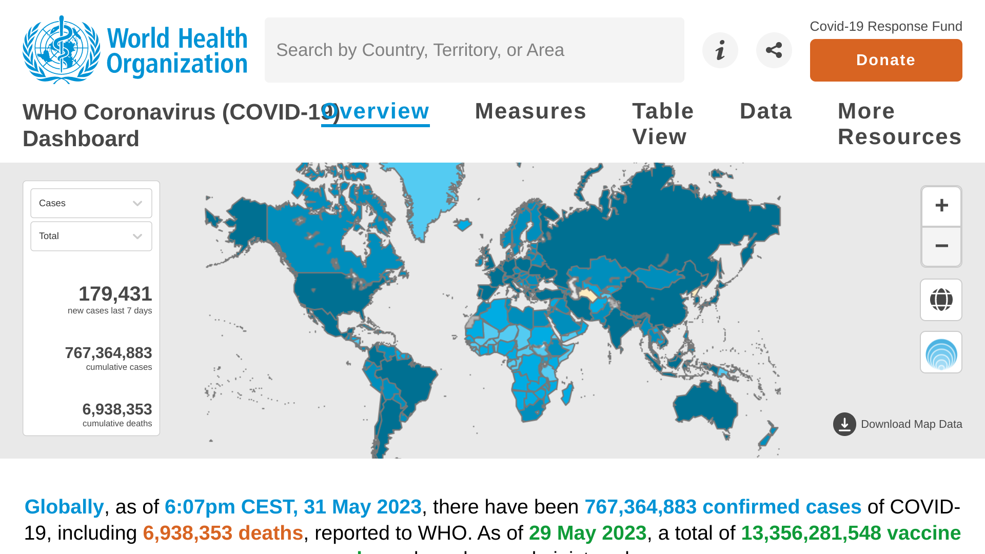 As of June 1, 2023, the situation is mixed at the regional level, with increases in reported cases seen in the Western Pacific Region and the African Region and decreases in related fatalities in all six WHO regions.