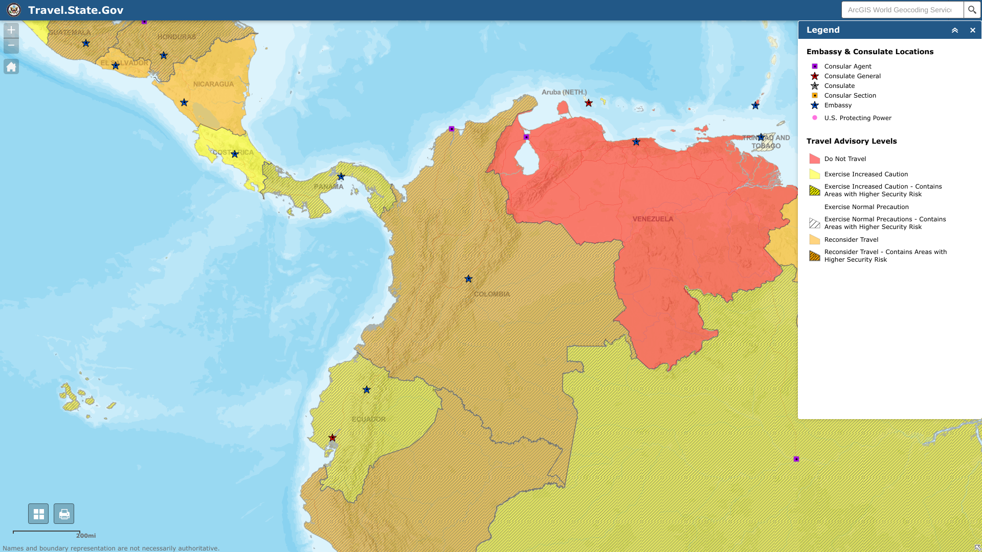 And Colombia's land border areas are off-limits to U.S. government personnel unless authorized.