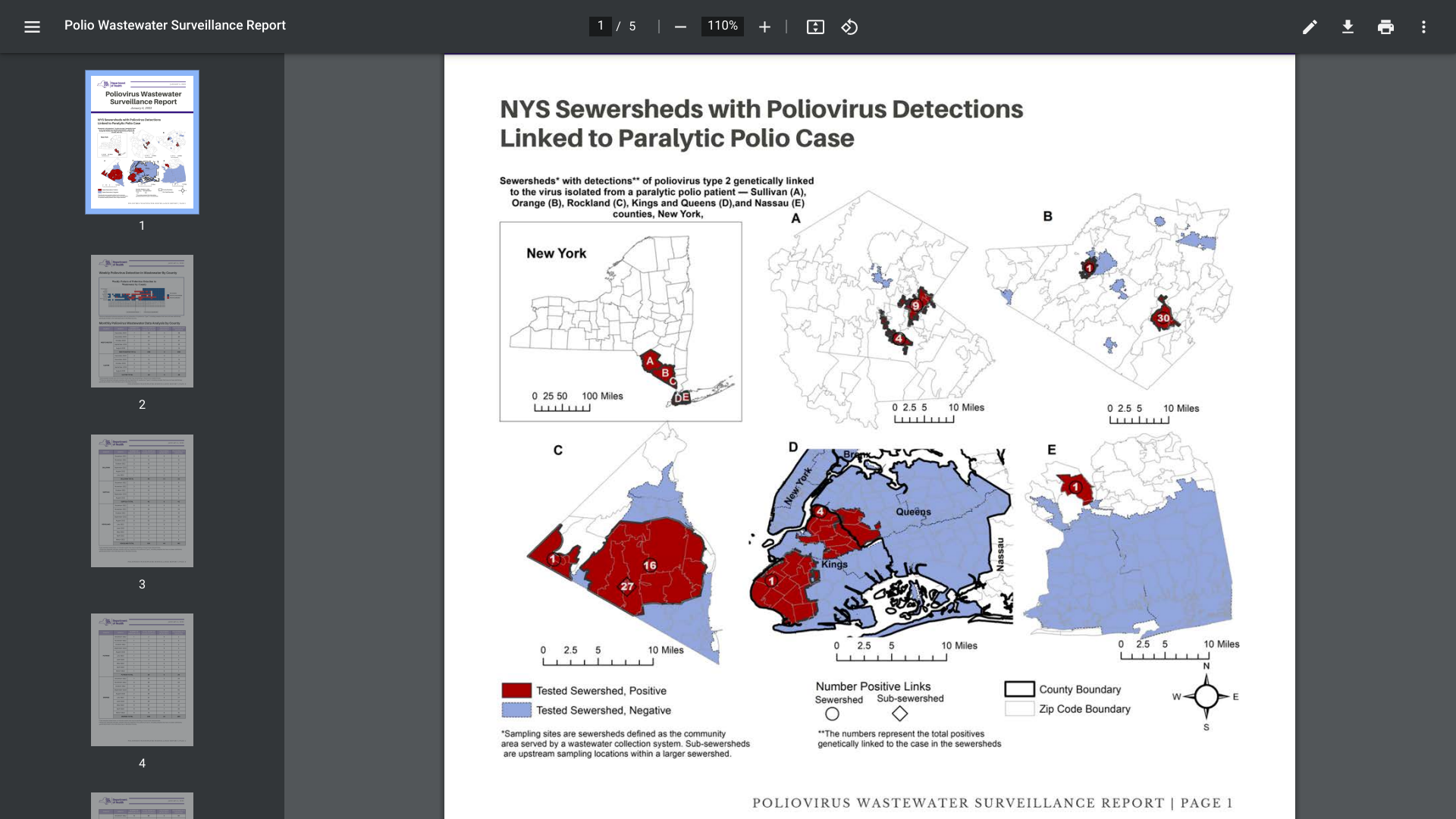 The New York State Department of Health Wastewater Surveillance's recent report reveals two additional positive poliovirus samples were identified in lower New York.