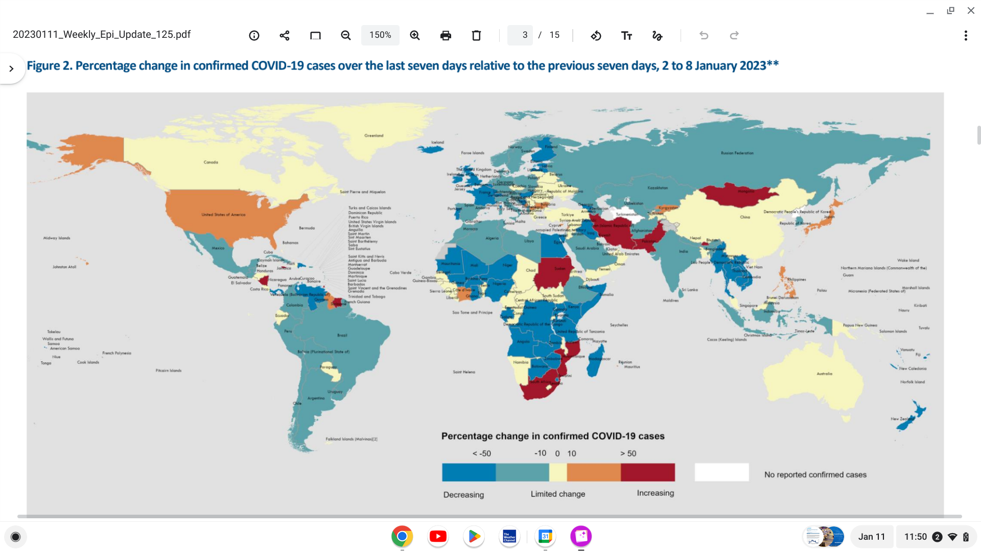 This Edition 125 data represents a reduction in weekly cases and deaths of 9% and 12%, respectively, reported the WHO on January 11, 2023.