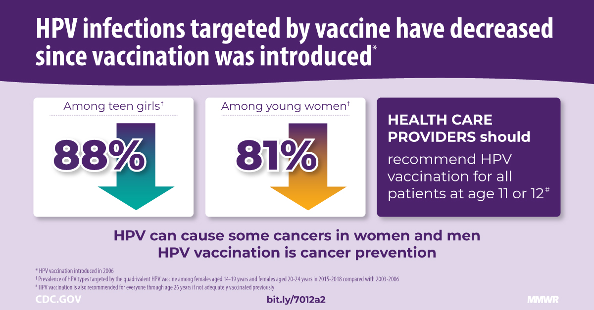 HPV can cause cancers of the cervix, vagina, and vulva in women, penis in men, and anus and throat in both men and women, says the CDC.