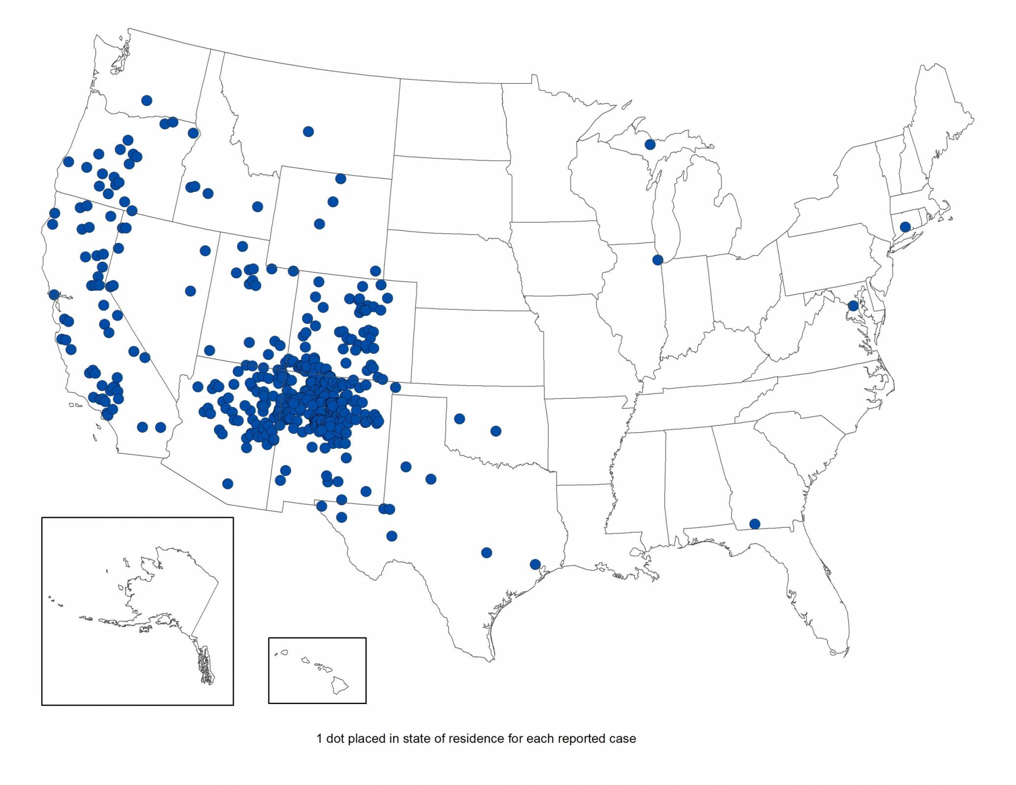 According to the U.S. Centers for Disease Control and Prevention, an average of seven human plague cases are reported each year in the United States. The last urban plague epidemic in the United States occurred in Los Angeles from 1924 through 1925.