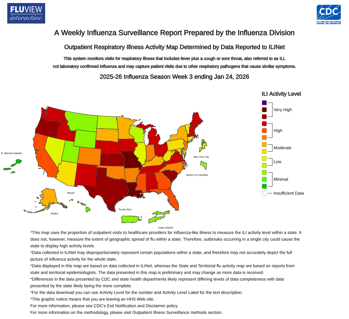 Furthermore, the CDC confirmed eight additional influenza-associated pediatric deaths this week, bringing the total for the 2025-2026 season to 52.