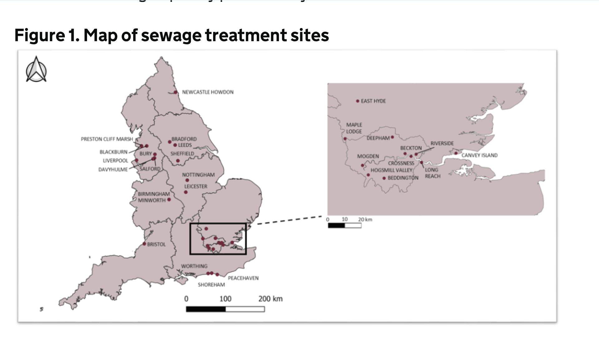 Detections in late 2024 from East Worthing STW (covering parts of West Sussex), Leeds Knostrop STW, and London Beckton/Crossness STWs.