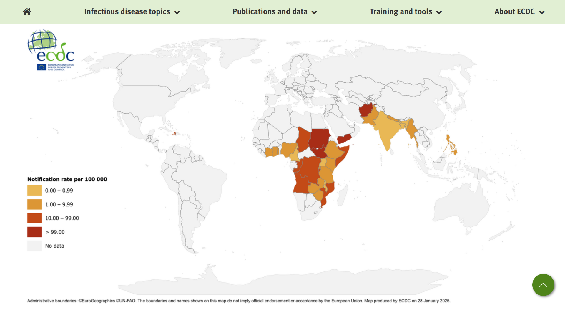The ECDC reported that from January 1 to January 27, 2026, a total of 1,203 cholera cases, including seven deaths, were reported across eight countries: Angola, Burundi, Ethiopia, Malawi, Mozambique, Namibia, Somalia, and Zambia.