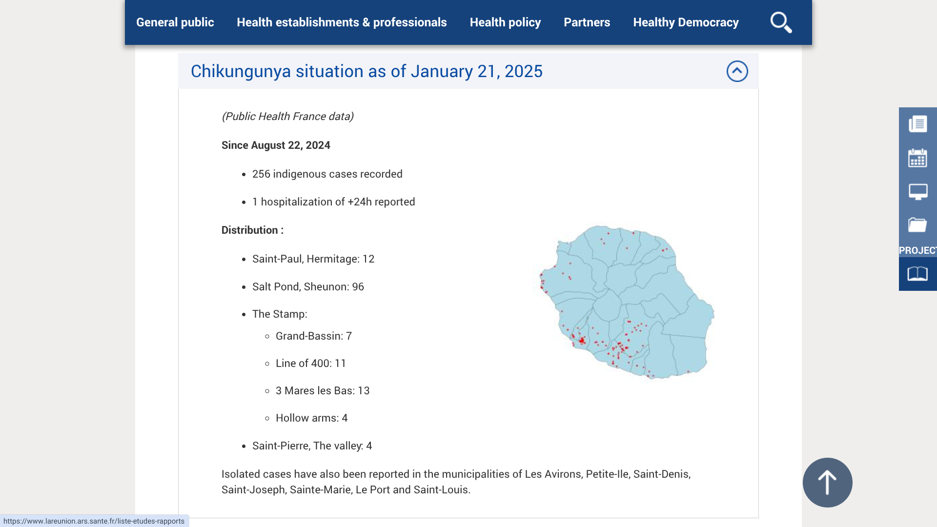The municipalities of Étang-Salé and Le Tampon still have the highest number of Chikungunya cases.