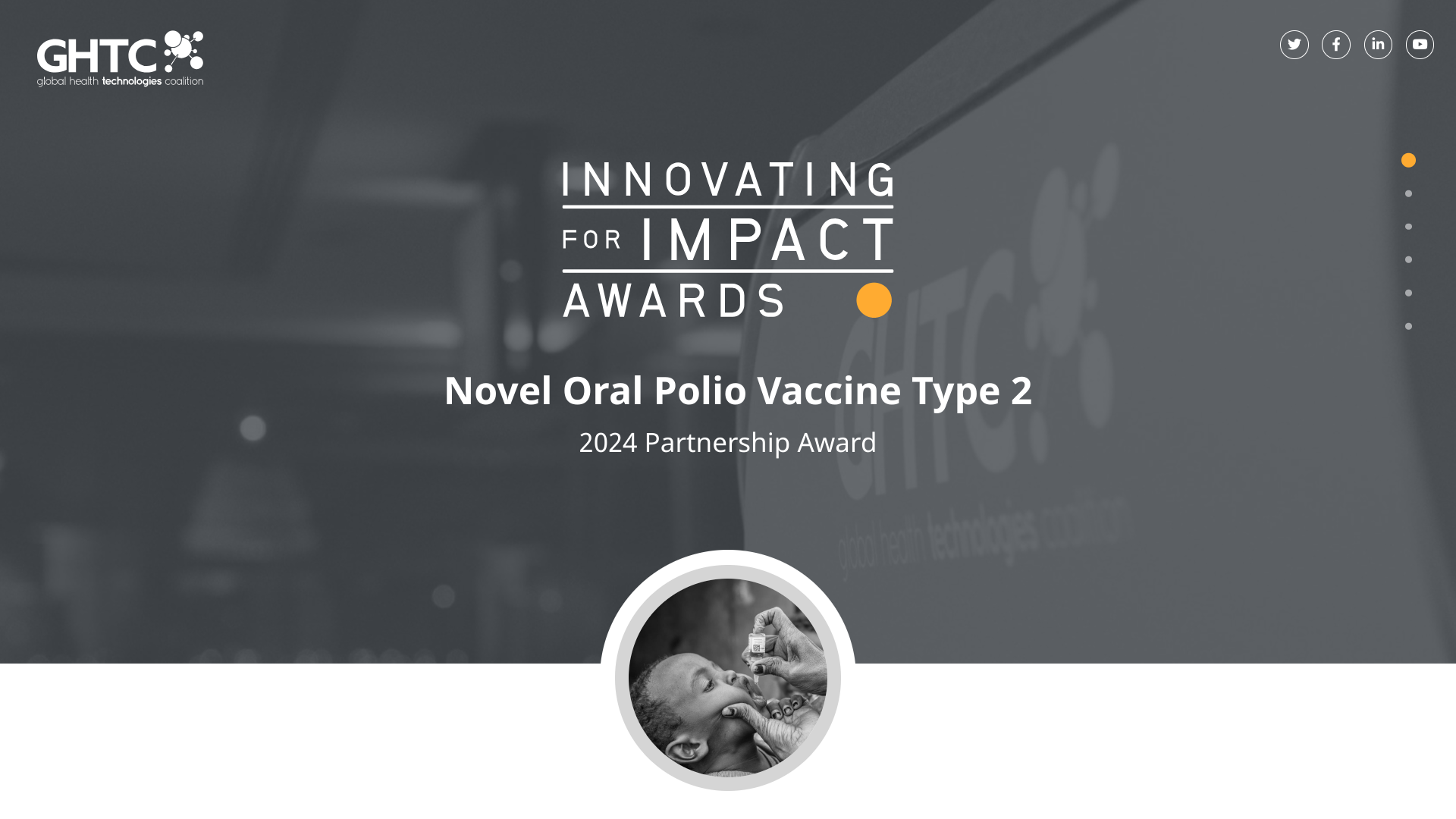 With over 1.1. billion doses already delivered, the Global Health Technologies Coalition (GHTC) recently honored the novel oral polio vaccine type 2 (nOPV2) development consortium with its 2024 Innovating for Impact Award.