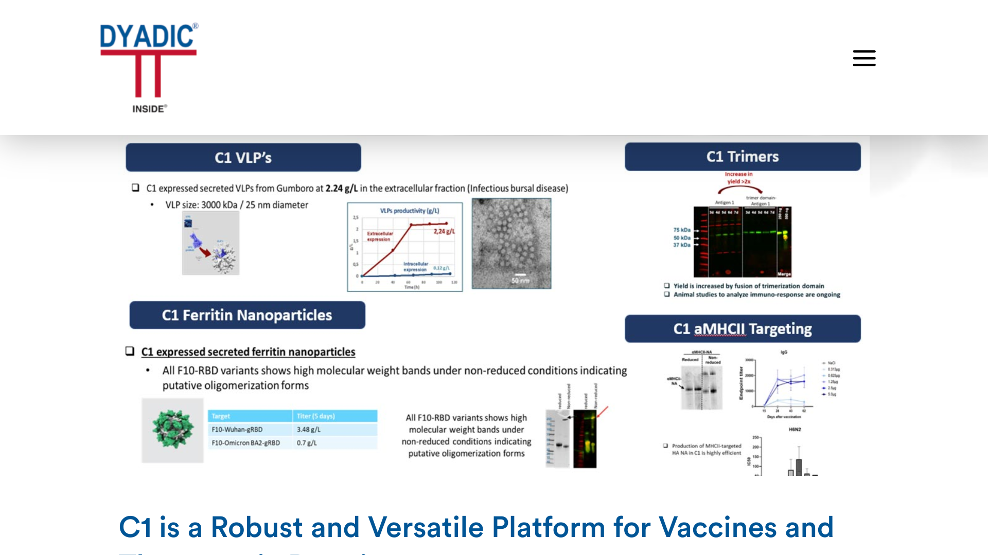 Currently, the C1 platform is being utilized in collaborations with leading pharmaceutical, biotech, academic, and government organizations to develop innovative vaccines and treatments.