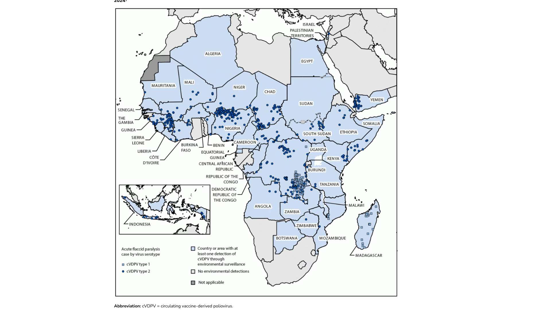 A new report describes recent global polio outbreaks using data from the World Health Organization's Polio Information System and the Global Polio Laboratory Network.