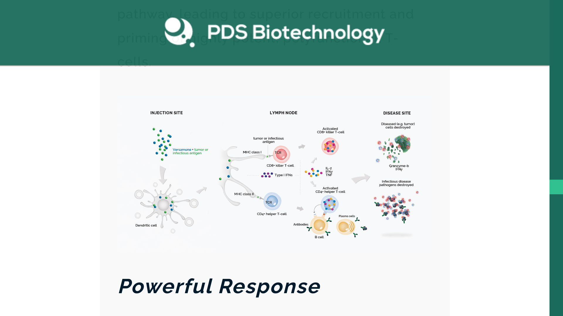 PDS Biotech’s oncology pipeline leverages the Versamune® platform and Versamune® plus PDS01ADC in combination with proprietary tumor-specific proteins or peptides (antigens) in developing targeted cancer immunotherapies.