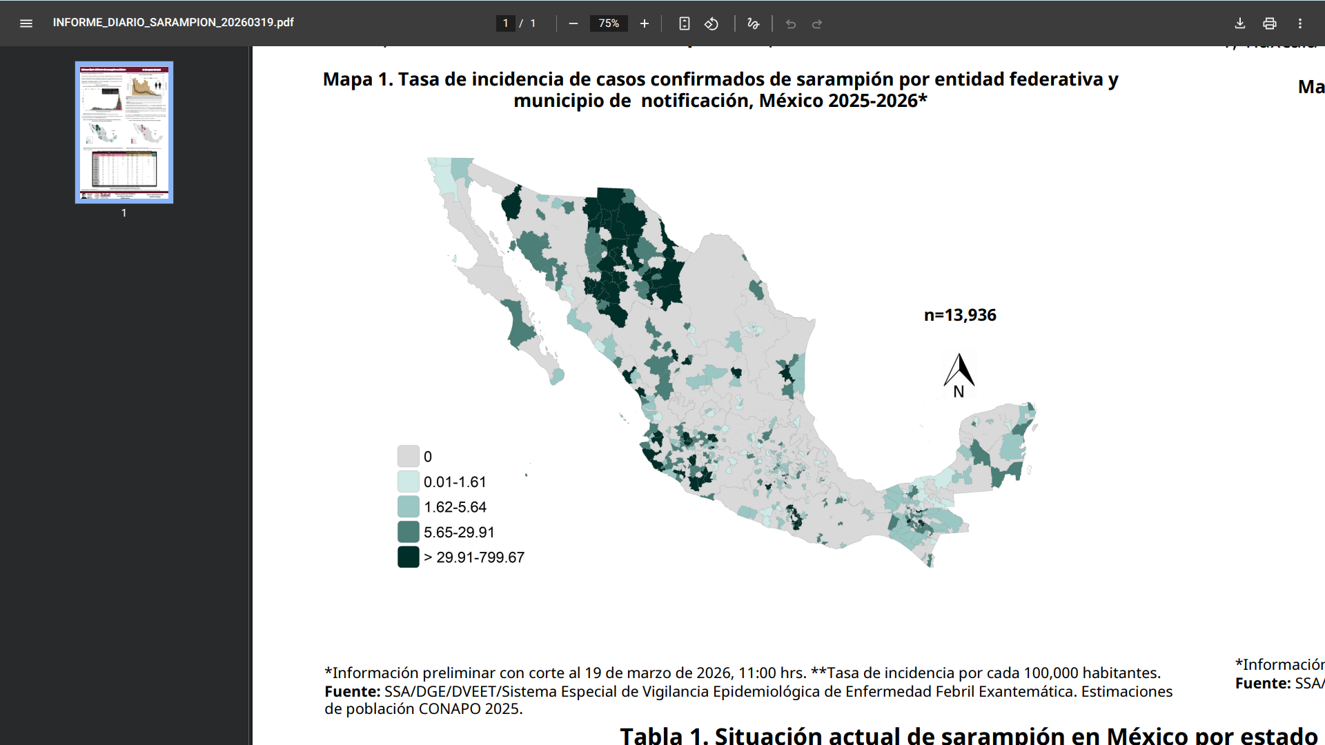 According to the epidemiological update on March 19, 2026, Mexico has reported 7,403 confirmed measles cases this year alone.