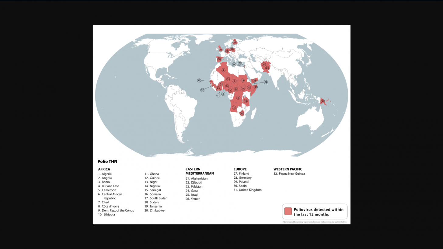 Currently, the U.S. CDC identifies 32 countries where poliovirus is a health risk, and advises international travelers to speak with a healthcare provider about immunization options, including a polio booster dose.