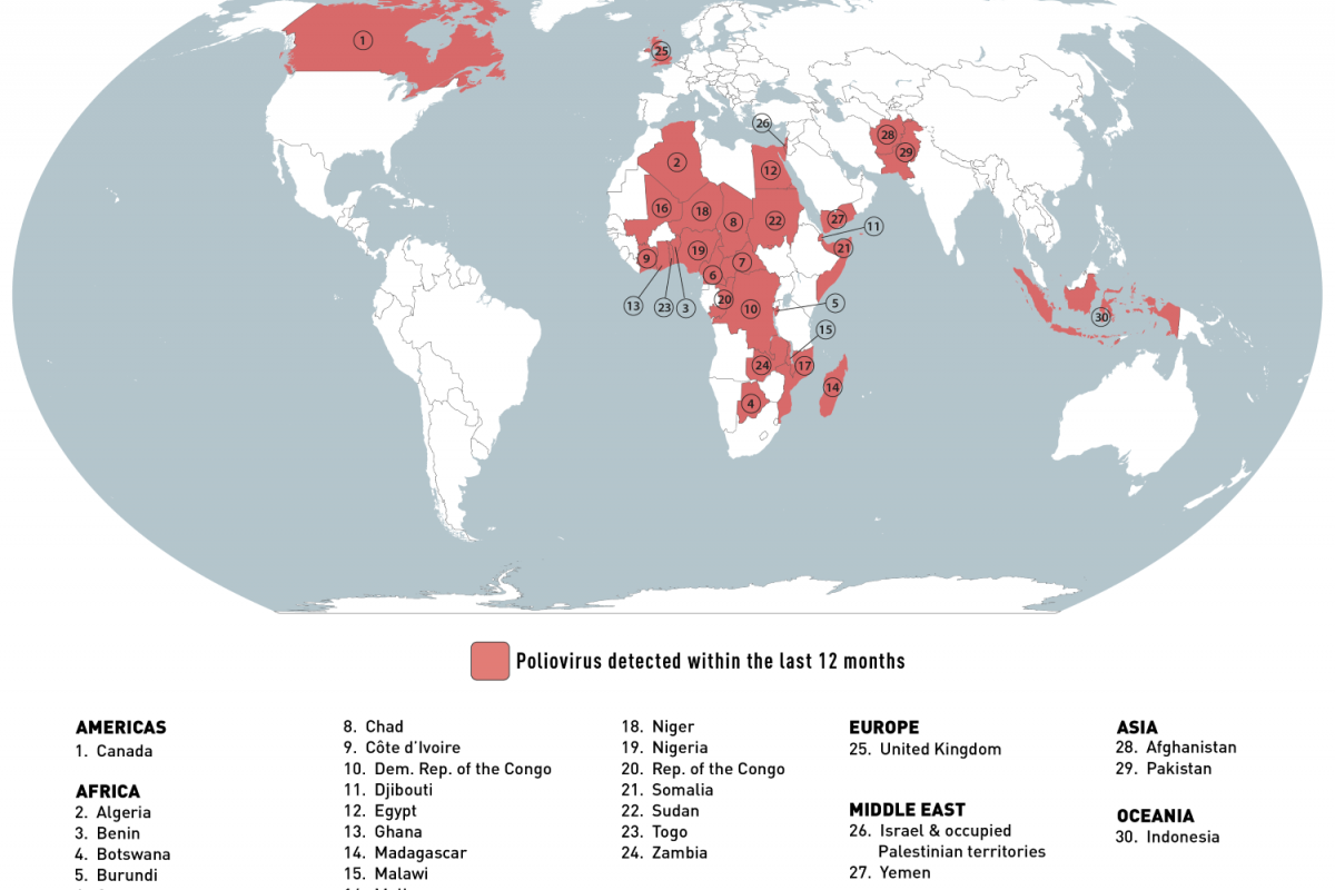 On June 26, 2023, the CDC identified thirty destinations with circulating poliovirus.