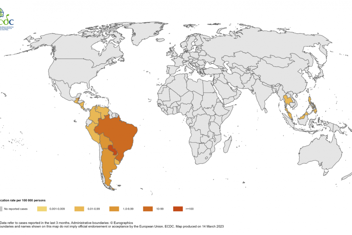 As of June 14, 2023, there have been 84 dengue cases confirmed related to international travelers.