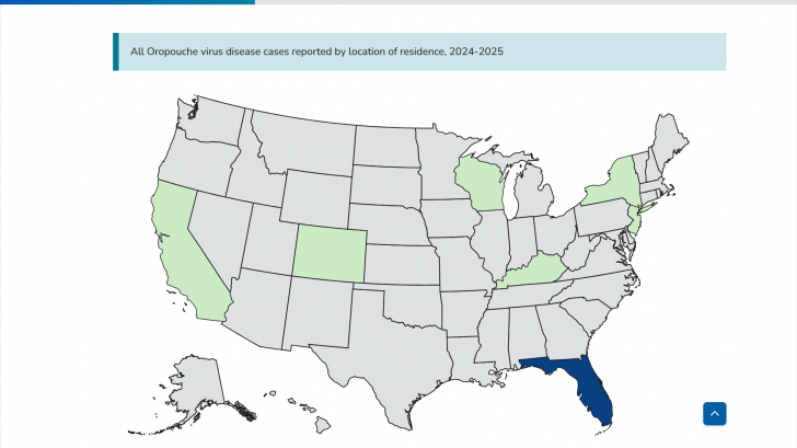 Travel related Oropouche cases confirmed in 7 US States in 2025