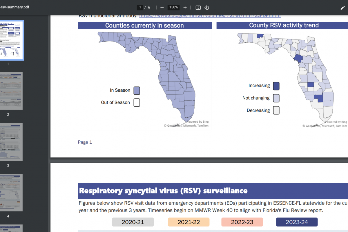 In the U.S., the Centers for Disease Control and Prevention's RSV detection graphs display the 5-week moving average, recently indicating decreased cases in certain states.